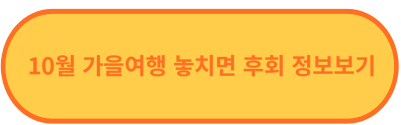 10월 가을이 되면 가을 단풍이 절경을 이루어 가을 여행을 계획하게 되는 시기인것 같습니다. 10월에 가을여행 하시고 힐링되시는 시간들 되셨으면 합니다.